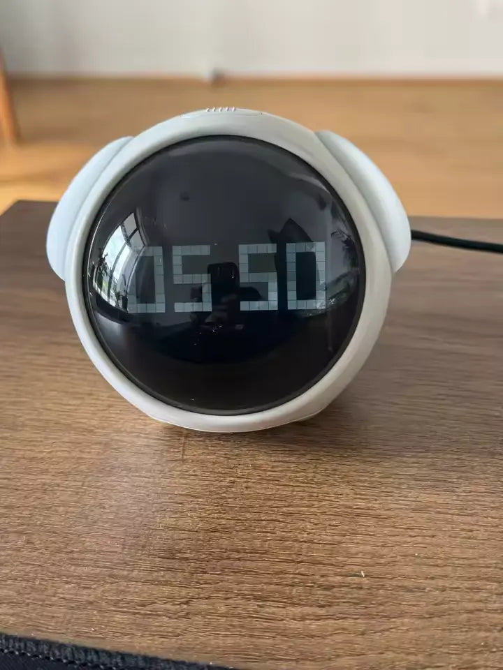 視認性の高いLED表示と室温計を備え、ユニークなラウンドデザインが空間をモダンに彩る、機能と美しさを兼ね備えた一台です。